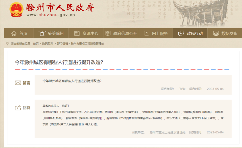 留言:今年滁州城区有哪些人行道进行提升改造?