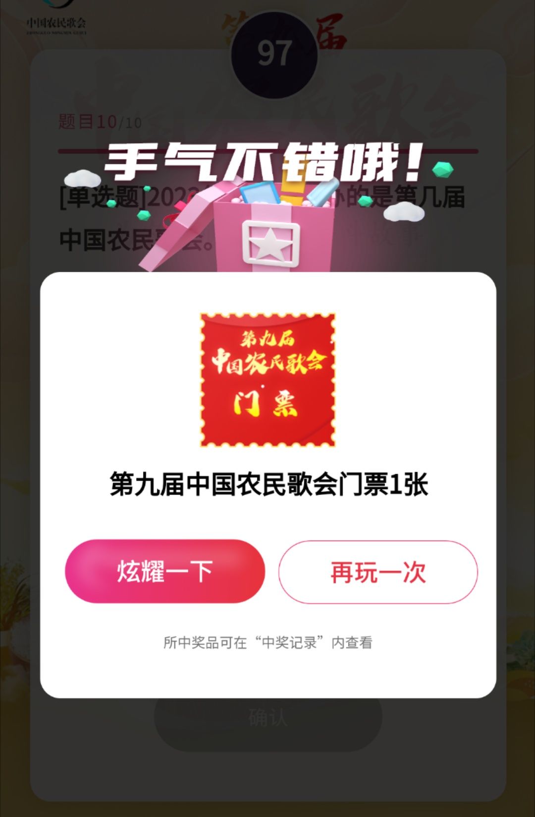 中了农歌会门票是到时候扫码就能进去吗?还是要兑换门票?