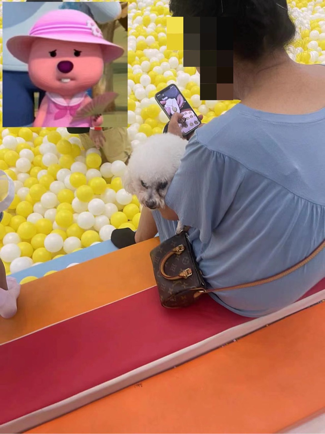 万达一楼淘气堡,这女的抱条狗坐在入口,工作人员叫都叫不出去 ,里面都是小孩,咬人可怎搞,