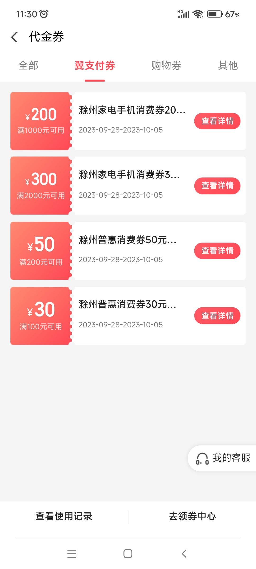 今天翼支付开始发消费券了,看看大家抢到了多少,我抢到了几张券。