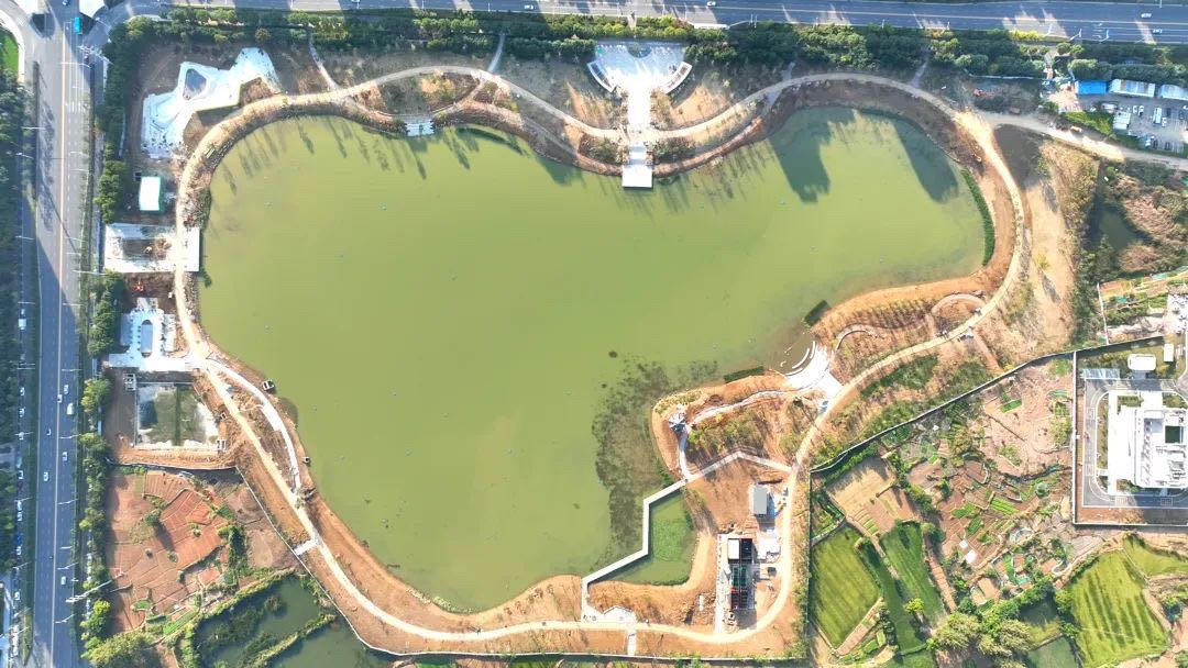 公园整体规划形成“以服务市民为领、以水为中心、以生态为脉”的指导原则,打造“湖林山湾”的不同形态空间,形成“一环三区五景”的规划结构,即以现有水体为中心,对水体进行生态修复和水环境治理,将生态健康的主题与水环境治理、防洪排涝、绿化景观相结合,创造一个城市滨水空间、标志性生态公园。