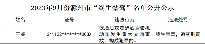(本次曝光的终生禁驾人员共有1人) 醉酒驾驶