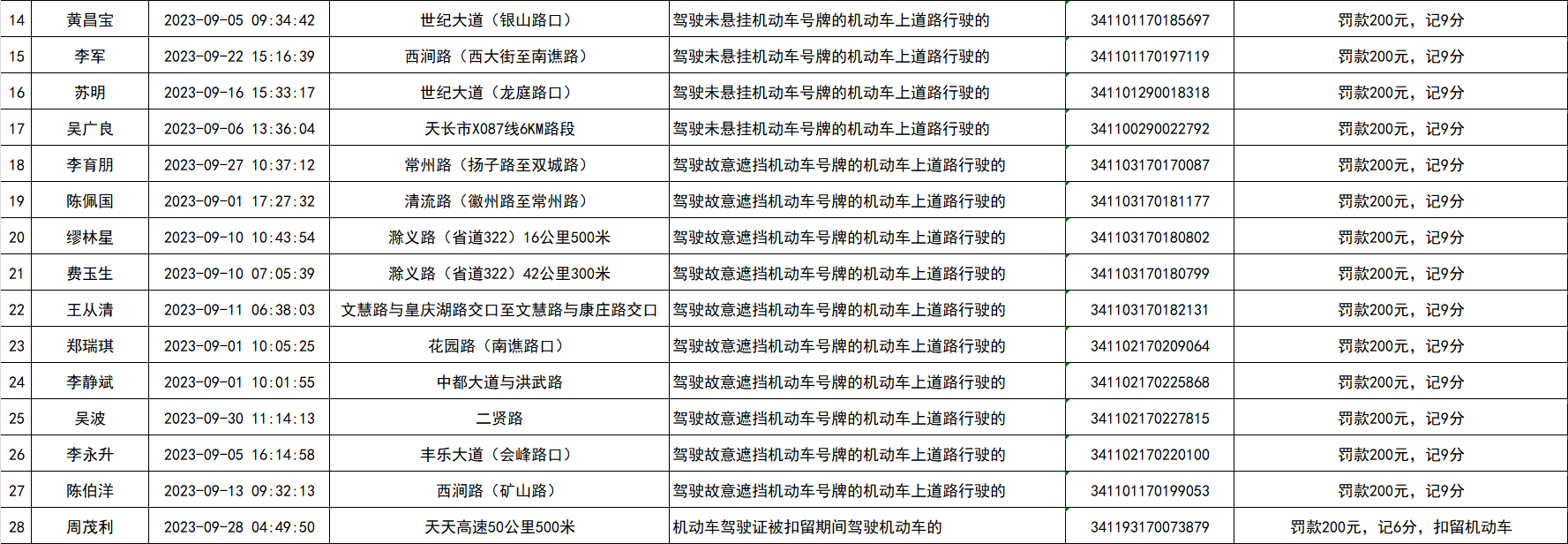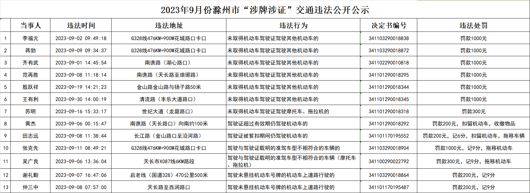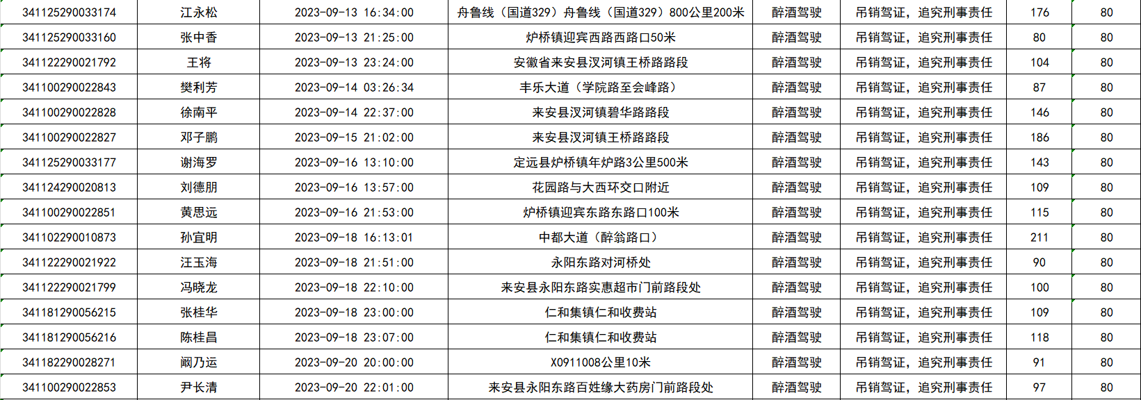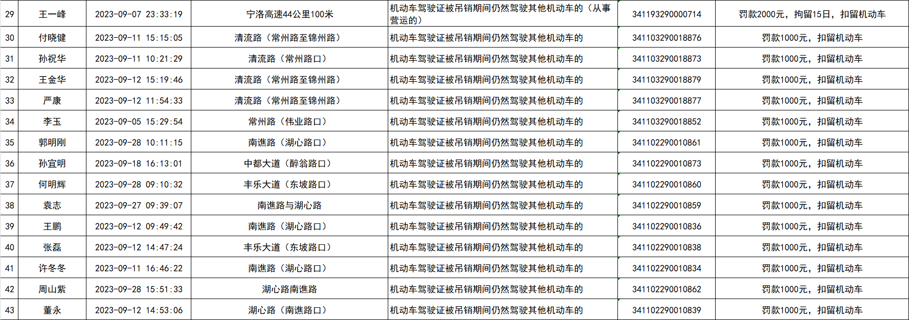 为做好交通事故预防“减量控大”(减少事故起数,控制较大交通事故)行动安全警示教育,进一步提高广大道路交通参与人员的交通安全意识、法治意识、文明意识,预防和减少交通事故,保障广大群众生命财产安全,滁州公安交警部门持续开展交通违法“五大曝光”(典型案例、终生禁驾、醉酒驾驶、机动车“违法王”、涉牌涉证违法、高风险运输企业)行动。现将2023年9月份滁州市终生禁驾、严重交通违法等交通违法“五大曝光”部分内容公示如下:7座面包车塞了17人!交警灵魂发问:你们出事了,子女疼不疼?天长市公安交警,在交通违法整治过程中,发现一辆蓝牌面包车存在涉嫌超员的违法行为。经现场检查,该普通客车竟然装了17人!行驶证注明核载7人,实载17人,超员达143%!交警对乘车人进行了“苦口婆心”式的批评教育,并对驾驶员依法处以罚款200元,驾驶证记12分的处罚。