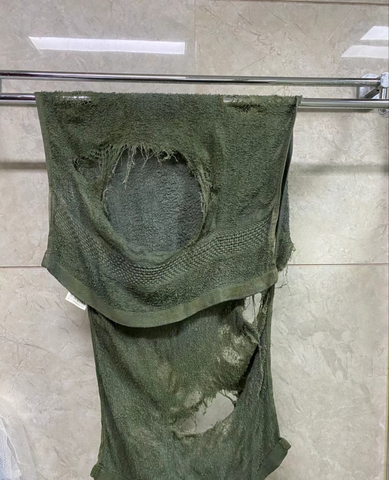 这是我老公用了3星期的毛巾,实在无法理解,为什么会有人把毛巾用成这样?