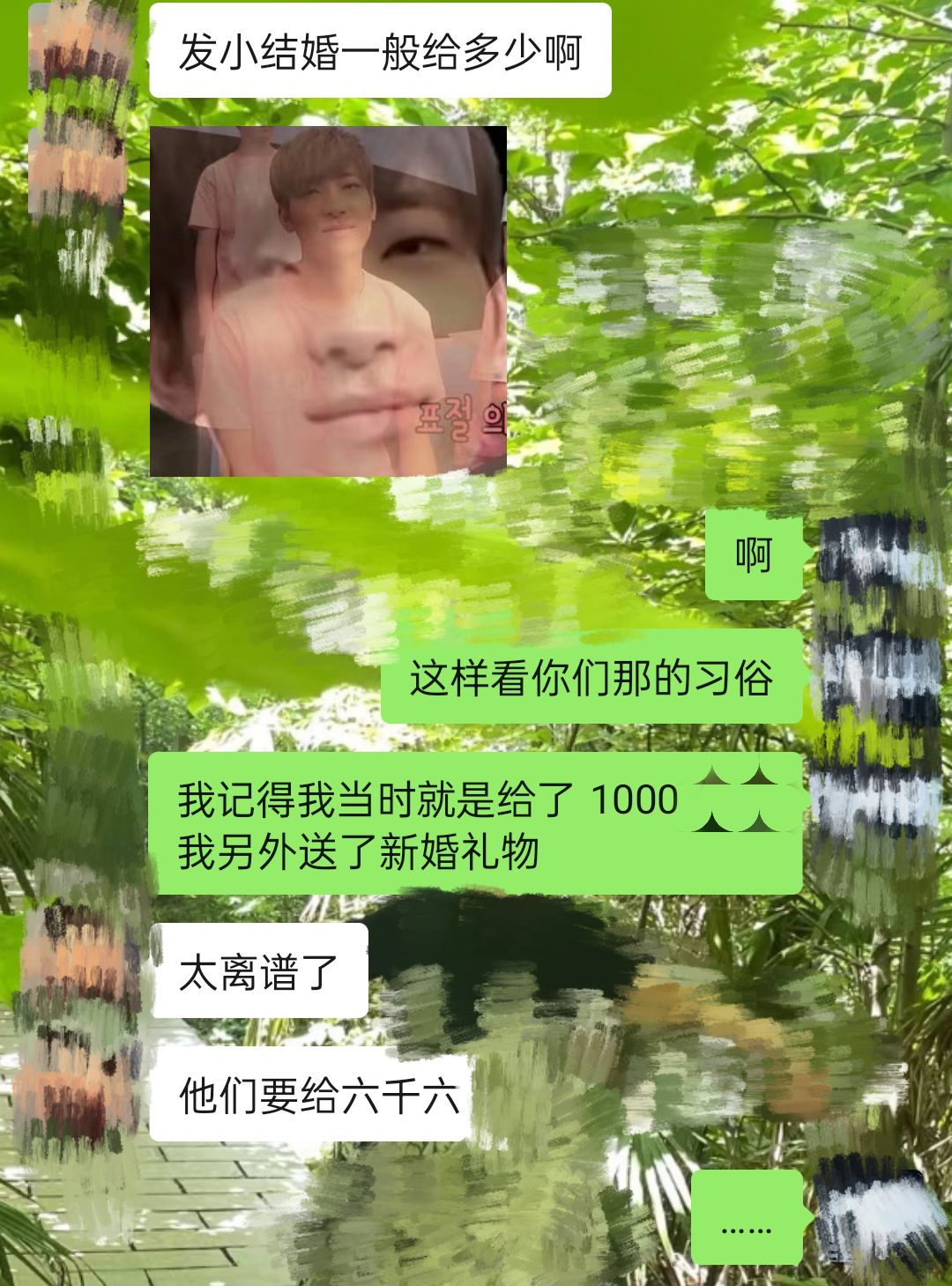 我大学同学是河南人定居在新疆那边,她最近问我发小结婚一般给多少,我正常就是1000块钱新婚礼物,如果我发现在我后面结婚的,看她给我的我再加200到 500,然后再买个新婚礼物,我们这边朋友是这样的,她跟我讲他们朋友说六千六
