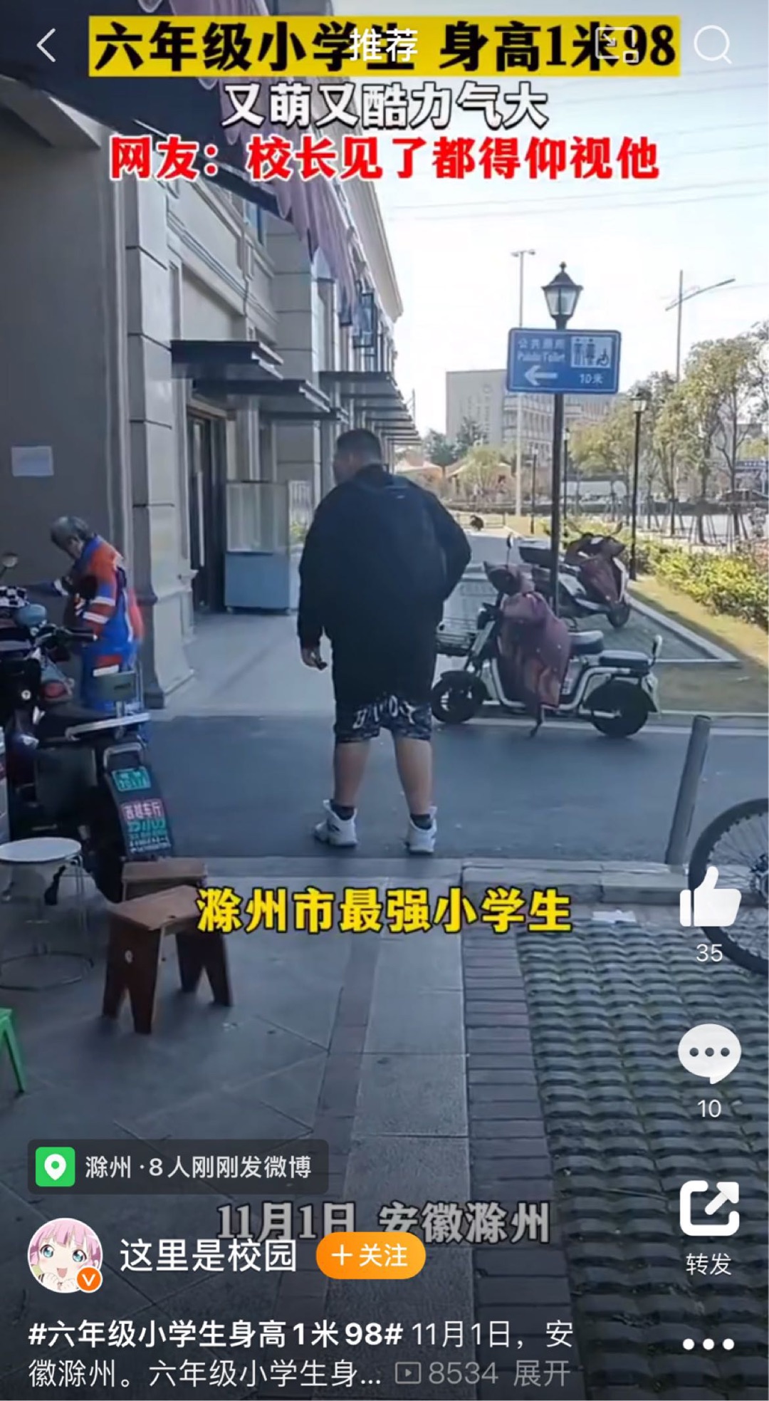 [滁州城事] 安徽滁州,一六年级小学生身高1米98!网友:校长见了都得仰视他! |