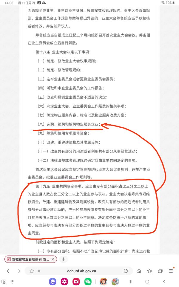 。2024年1月10号,华剑物业开始拦杆收费,要求业主缴纳车位费方能进出,业主无奈只能去物业处缴纳车位费,却被告知必须连带物业费一起缴纳,否则不予受理。没名没分的物业公司只因为与业委会主任私交甚好,就能堂而皇之的向业主索取费用,只要抱着业委会主任的大腿,就能为所欲为!《安徽省物业管理条例》看了吗?学了吗?