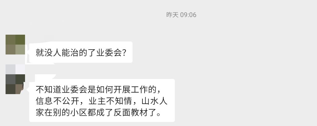截止到今天,山水人家依旧没有引进中标物业,反倒是业委会主任的朋友强势占领山水人家小区半个月后,开始了没脸没皮的敛财行动。