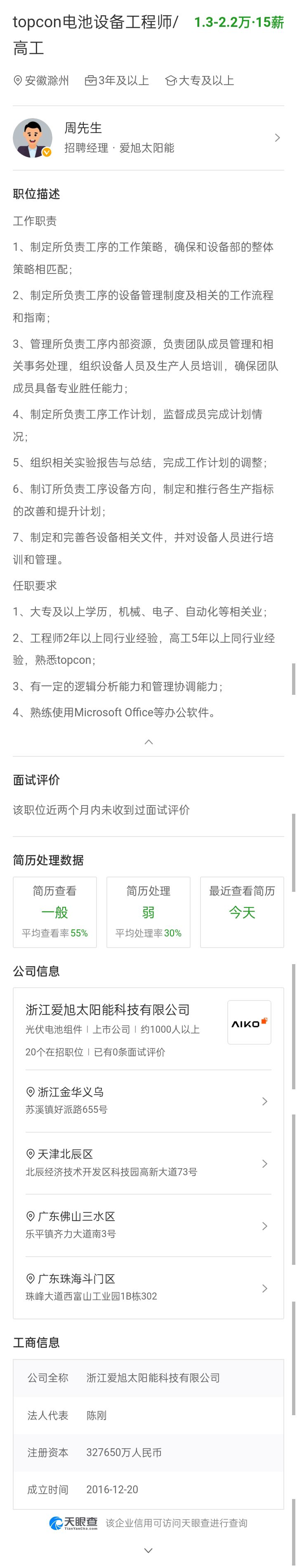 爱旭科技已收购滁州赛维能源项目,设备已进场,计划二季度投产。爱旭科技滁州厂已开始招聘!爱旭科技公告暂时未出。随着,爱旭、晶澳的加入截止目前为止全球20强光伏企业,已落地滁州11家。