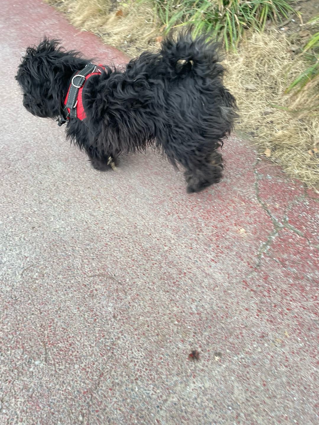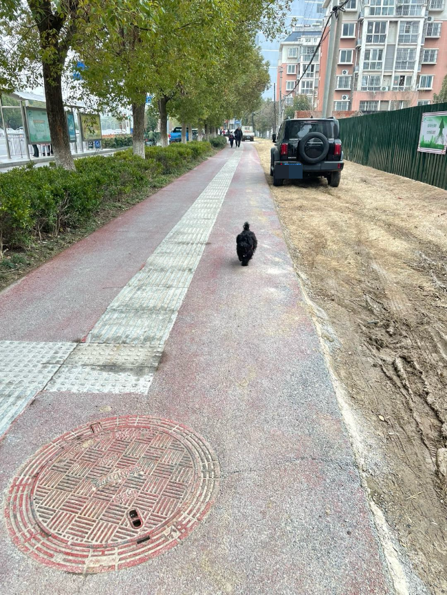 玉兰公馆门口附近遇到一只黑色狗狗,是谁家狗丢了!