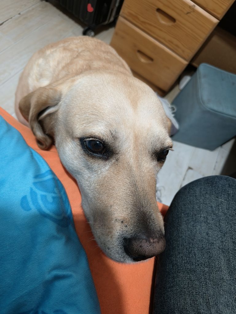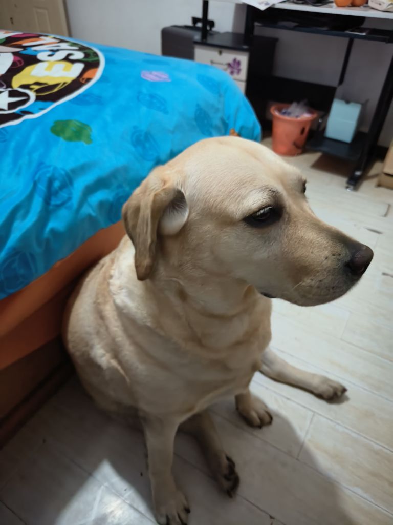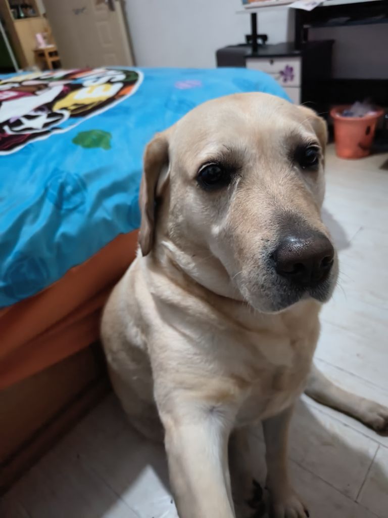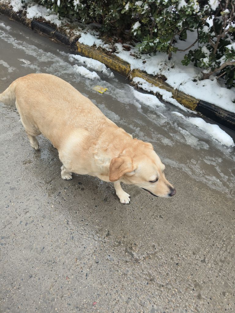 特征:体型胖,毛色黄色(拉布拉多)下巴下有个痣带毛,叫她(蛋挞)或者(小挞)会回应你,贴别亲人,不咬人。