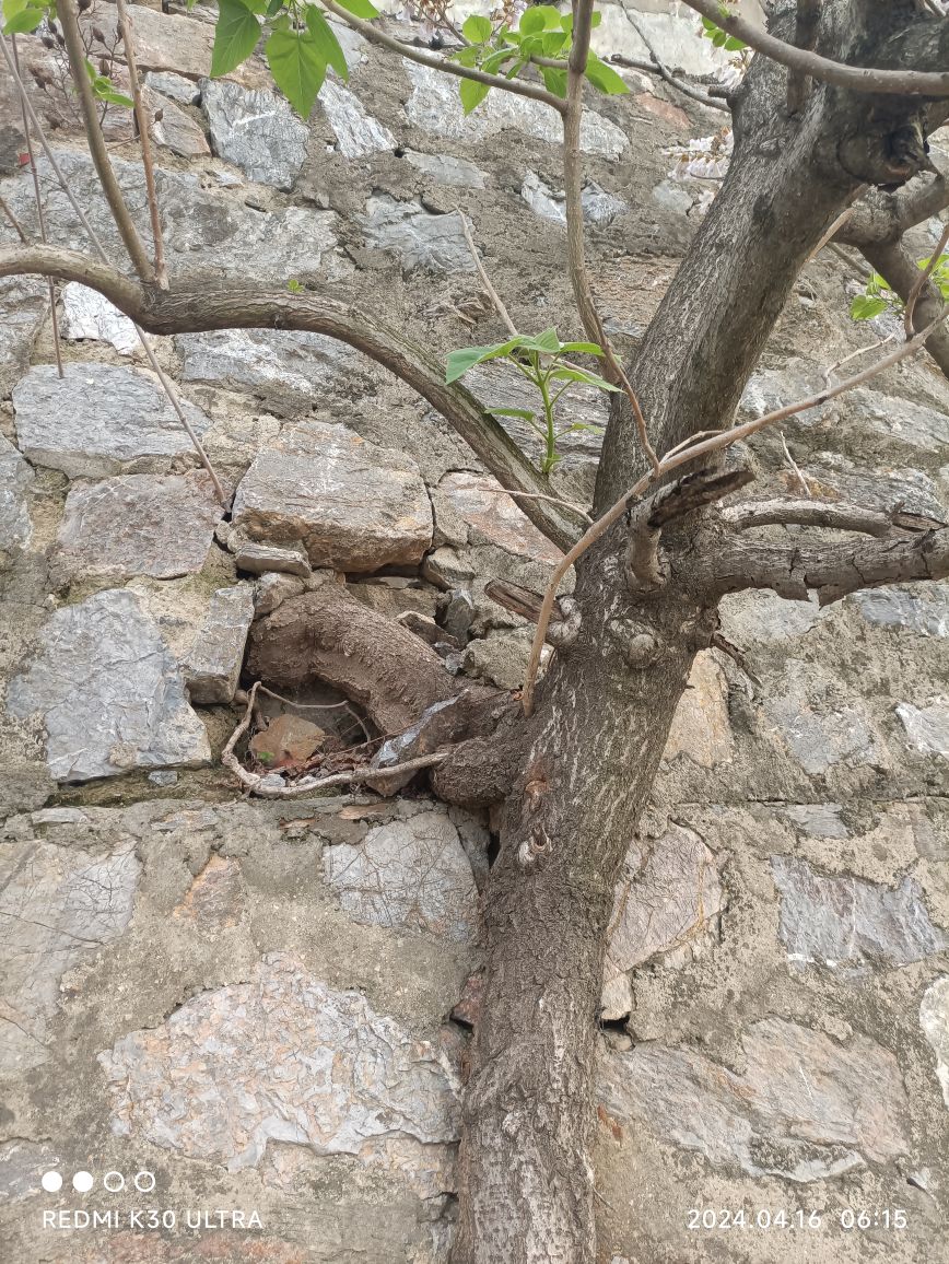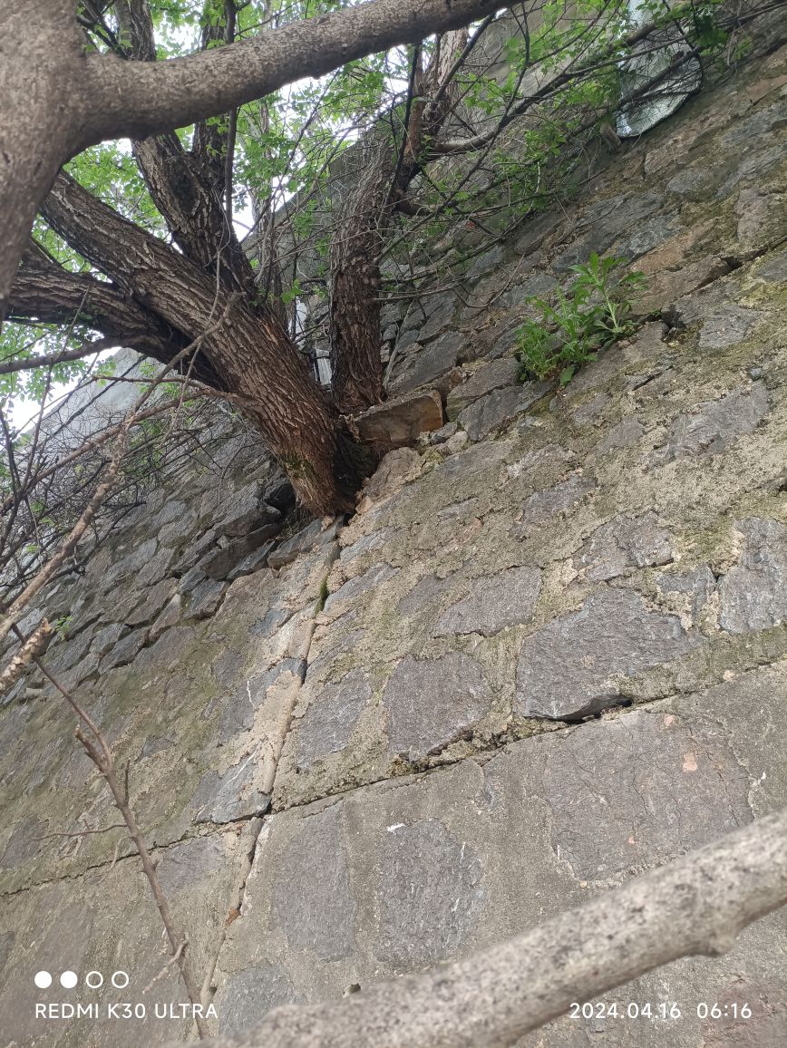 滁州市滨湖路丰乐派出所旁边石头墙里长出大树 ,有安全隐患请相关部门处理。
