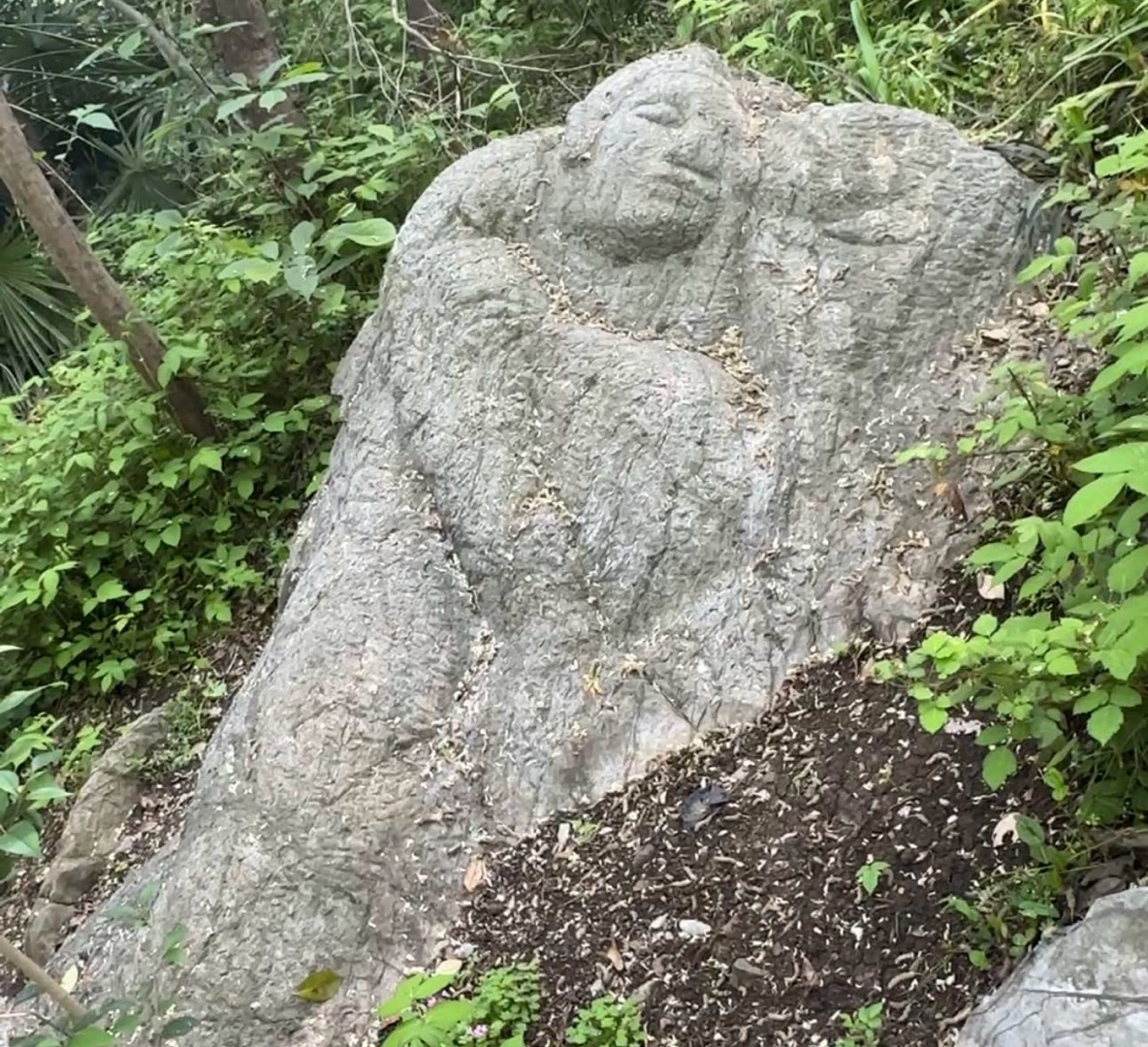 看到后面的石头没?卧佛就在那