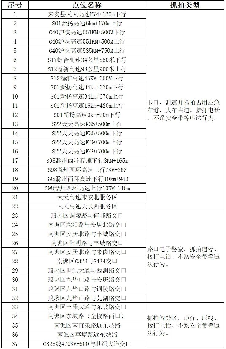 拟于2024年6月3日启用以下电子监控抓拍设备,现将设备类型和点位分布公示如下: