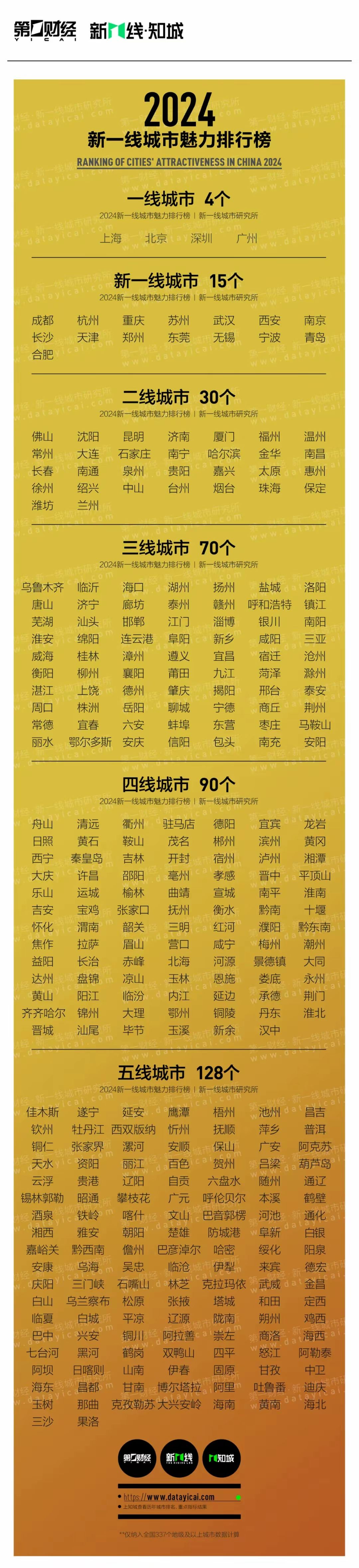 该排行榜结合新一线城市研究所自有的商业和产业大数据,围绕商业资源集聚度、城市枢纽性、城市人活跃度、新经济竞争力和未来可塑性五大一级维度来评估337座地级及以上城市的综合魅力表现。