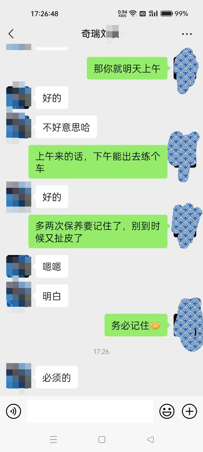 谈价钱时我们去的三人听的都是赠送的,现在就变成抵扣的金额里了。和他理论了一会,他后来又改口说后面再免费给我加两次保养,我想也行吧,反正都是送的,就不计较了。现在正常送的保养完了,再找他拿保养劵时就不回消息了,装死了。(之前保养是不用劵的,直接看车主信息,现在改成用劵了)