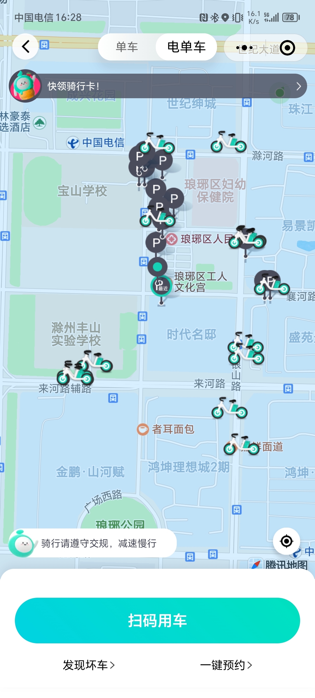今天偶然发现好多新的共享电动车,进入小程序一看 果然投放了。真方便