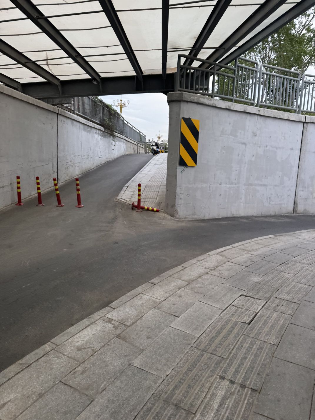滁州宝山路大桥下穿隧道这个隔离栏的作用是什么,让骑车的减速吗?看不懂这个设计