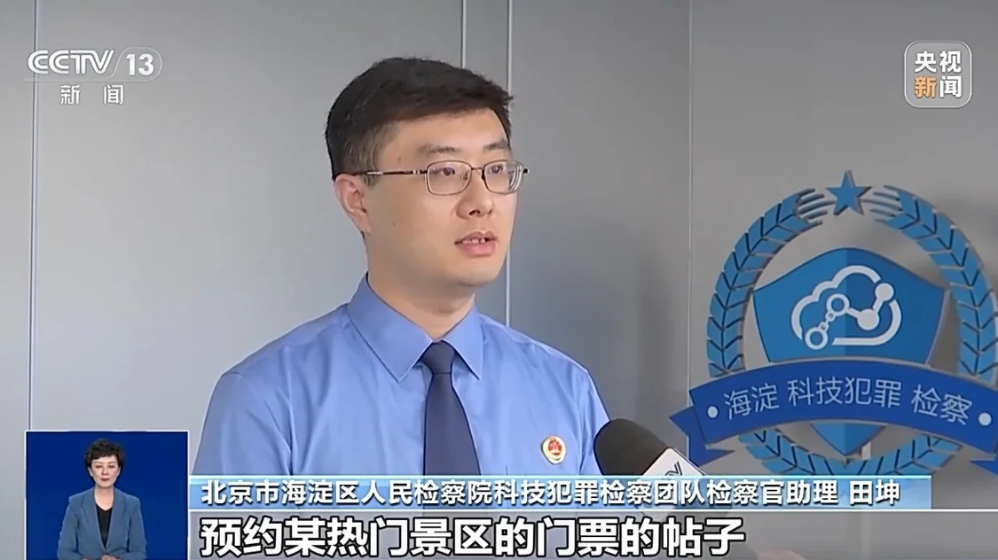 北京市海淀区人民检察院科技犯罪检察团队检察官助理 田坤:他们会在某二手物品的交易平台、购物平台,还有一些自媒体平台上,发布一些可以帮助代抢热门景区门票的信息。