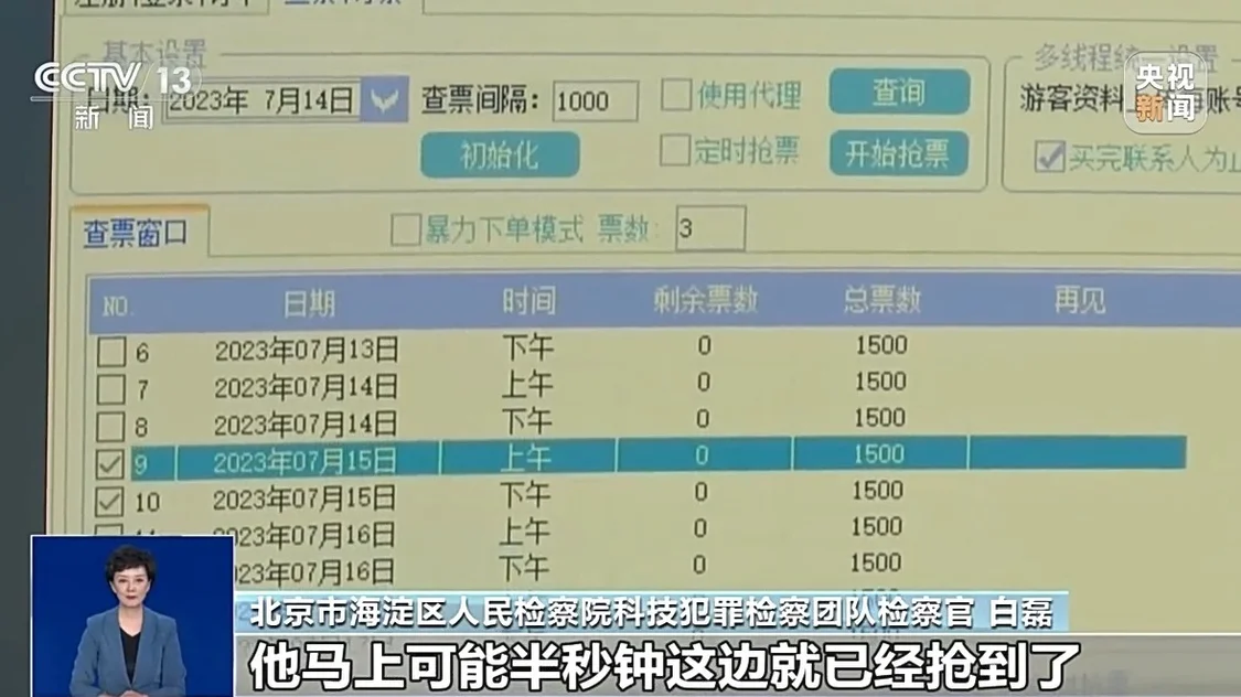 北京市海淀区人民检察院科技犯罪检察团队检察官 白磊:正常抢号,步骤操作下来可能一分钟、两分钟就没了。但是他提前把信息输进去,一放号,可能半秒钟就已经抢到了 。