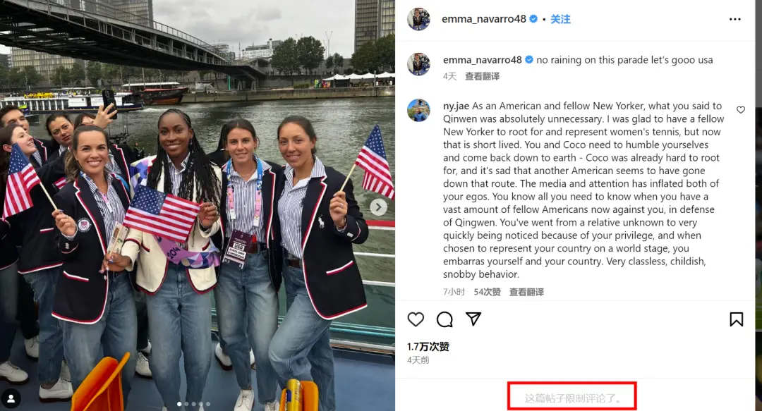 不知道是不是受不了美国网友狂骂,刚刚上去纳瓦罗的ins一看,评论关了