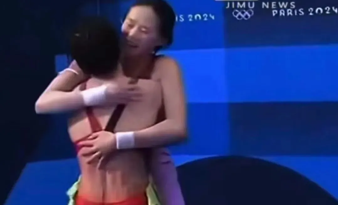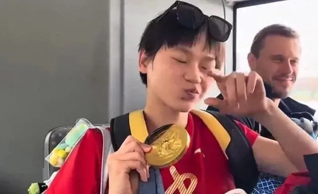 男记者所谓疯疯癫癫的,是说全红婵和陈芋汐双人夺金后,在奥运村坐大巴车回驻地。