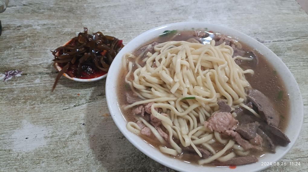 上午去义乌商贸城采购用品,特意绕路到扬子小区门口吃碗面。实话实说除了份量足以外,汤料口味平平无奇,面条好无嚼劲,肉丝和猪肝焯老了。总之