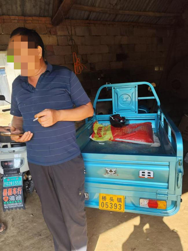 车辆编号:潘村镇05997 车主姓名:李** 违法时间:2024年9月117日 违法地点:明光市X14县道与柳塘路交口 违法行为:违法载人、驾乘人员均未佩戴安全头盔 处理方式:上门警示宣教