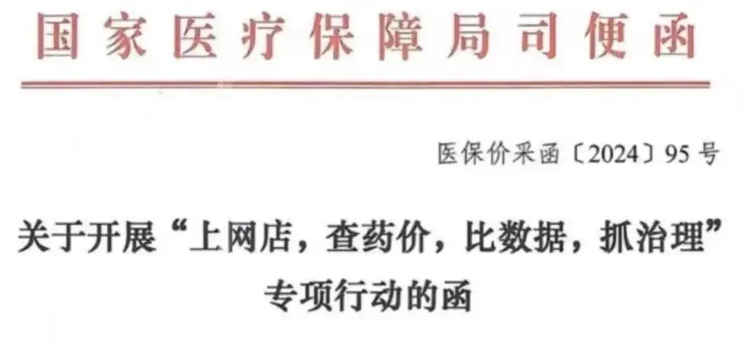6 月,「上网店,查药价,比数据,抓治理」专项行动正式开启,引入网络售药平台「即送价」作为对比。如果出现价格显著高于「即送价」的情况,特别是涉及到医保基金支付的,则应督促医药企业和定点药店调整药价至合理水平。