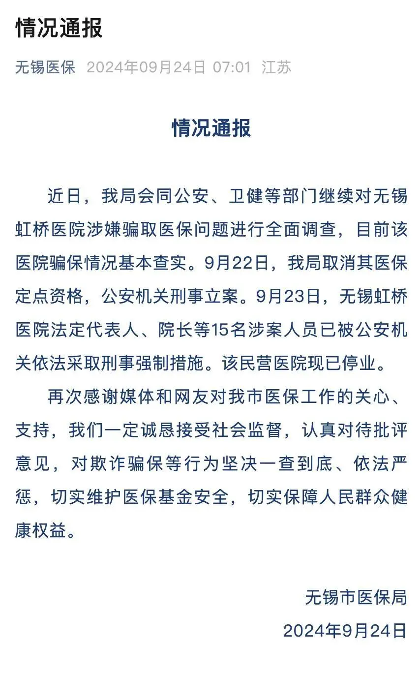 从媒体广泛报道「医生实名举报医院骗保」,到国家医保局派出飞行检查组直接进驻医院,再到医院停业,法定代表人、院长等已被公安机关采取刑事强制措施,前后不过 3 天。