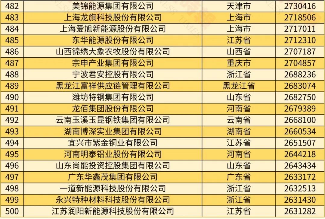 2024中国民营企业500强榜单
