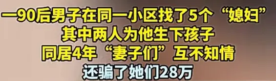 一个渣男在同个小区找了5个老婆,其中一个还生了娃,和合法妻子住同单元的楼上楼下。