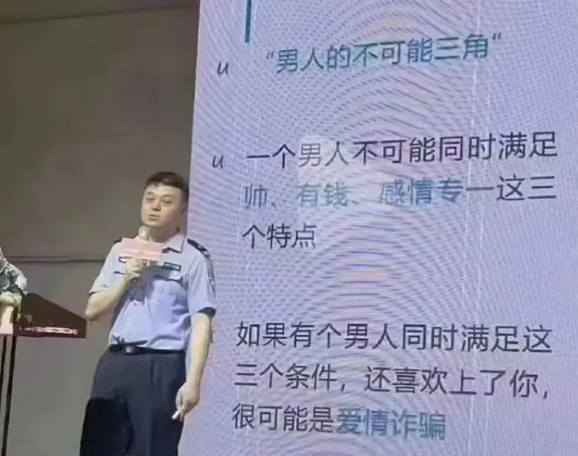 一位警察蜀黍在做防诈宣传时,特意强调了“男人的不可能三角”。