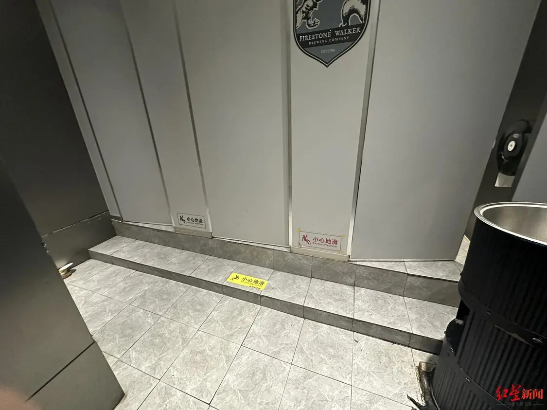 她告诉红星新闻记者,当天她一共消费342元,买了12瓶酒,和酒吧工作人员共饮。当晚11点过,她从厕所出来时,没注意到有两个台阶,加之地面有积水,所以踩空,导致脚部被扭伤,肿了起来。