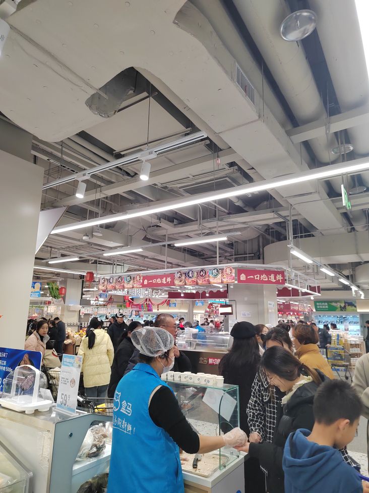 滁州盒马鲜生超市开业都一周了,现场还是人山人海啊!排队十几分钟才能进去!真的是火爆