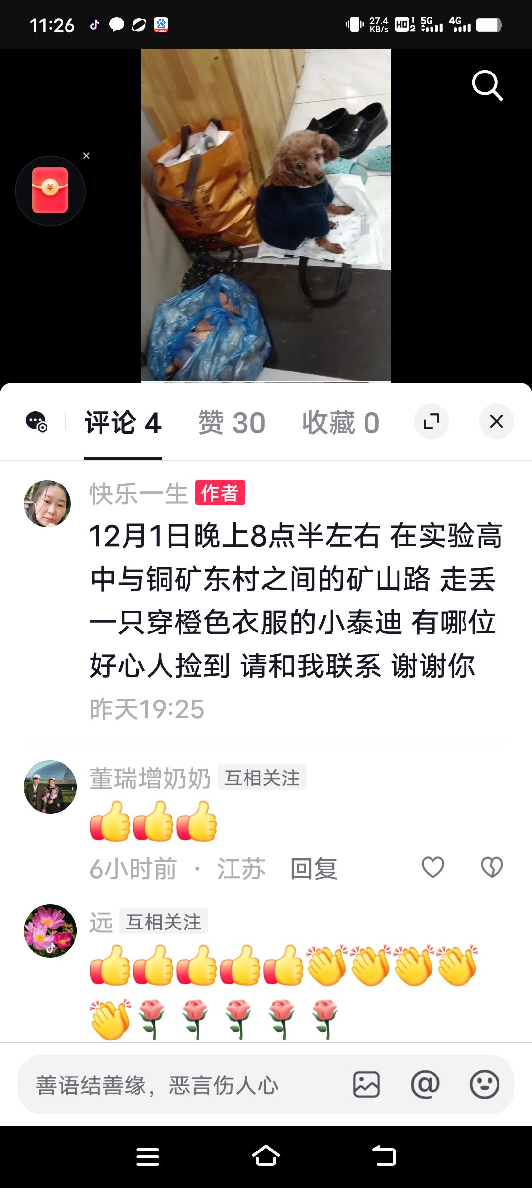 我家狗子丢了31天了,12月1号丢的,滁州市实验高中东门口