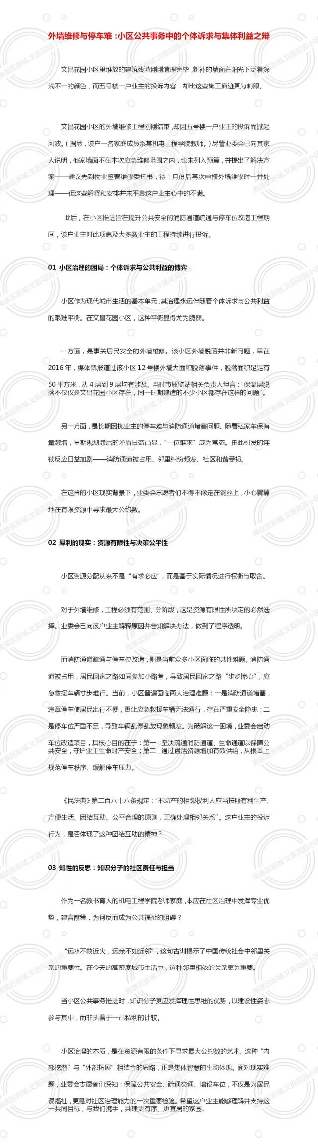 [焦点话题] 外墙维修与停车难:小区公共事务中的个体诉求与集体利益之辩 |