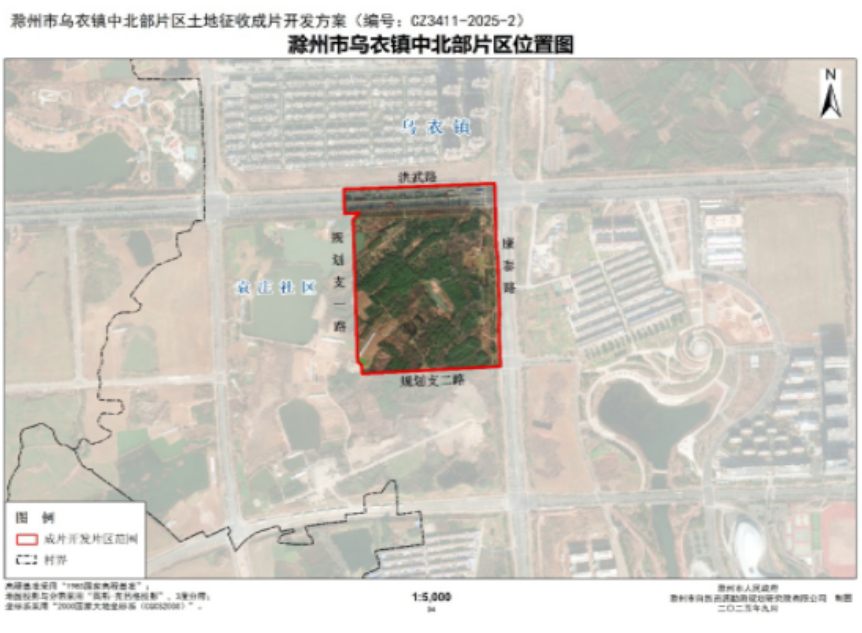 为贯彻落实《中华人民共和国土地管理法》第四十五条、《自然资源部关于印发<土地征收成片开发标准>的通知》(自然资规〔2023〕7号)有关规定,根据《安徽省自然资源厅关于做好土地征收成片开发方案编制工作的通知》(皖自然资规划函〔2021〕1号)以及《安徽省土地征收成片开发标准实施细则》(皖自然资规〔2021〕4号)的要求,我市组织编制了《滁州市乌衣镇中北部片区土地征收成片开发方案(编号:CZ3411-2025-2)》,拟对该区域实施土地征收。为更好地了解社会公众的意愿和利益诉求,提升成片开发方案编制的科学性、合理性和实用性,现对该方案公开征求社会公众意见。