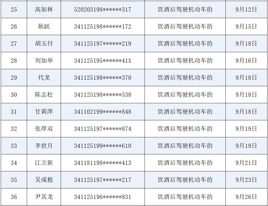 为做好交通事故预防“减量控大”(减少事故起数,控制较大交通事故)行动安全警示教育,进一步提高广大道路交通参与人员的交通安全意识、法治意识、文明意识,预防和减少交通事故,保障广大群众生命财产安全,定远公安交警部门持续开展交通违法“五大曝光”行动。现将2025年9月份交通违法“五大曝光”部分内容公示如下: