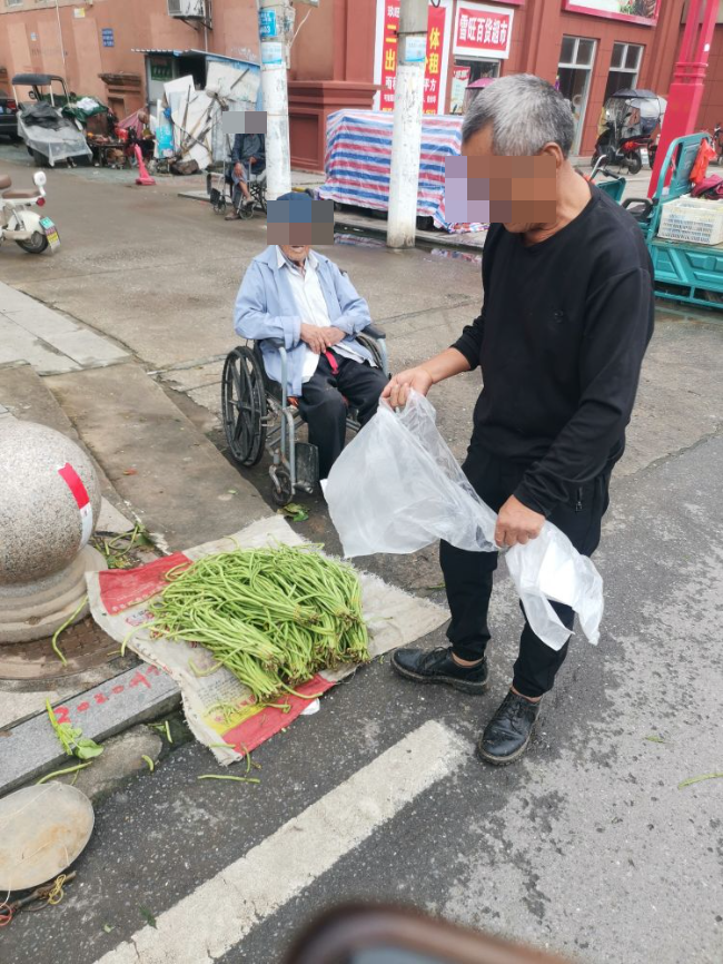 半塔,六十多岁的汉子,带着105岁的爹在卖豇豆,品相差,虫眼多,我刚好想腌点豇豆吃馒头,于是把豇豆都买下,8毛一斤,一共13块钱。