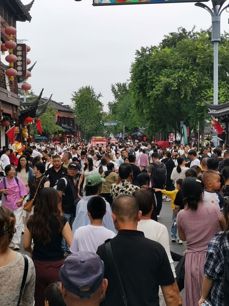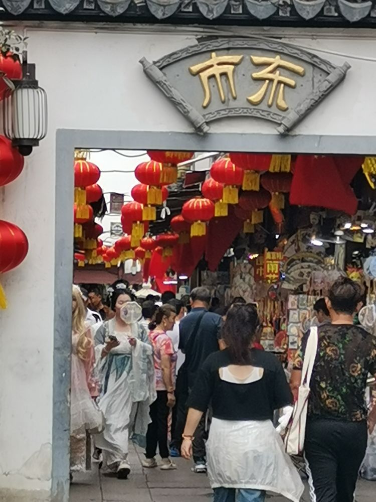 大包小包的少了,多是休闲装,携带和着装,像出门去菜场买个菜,就差穿睡衣睡裤了,这是东市,