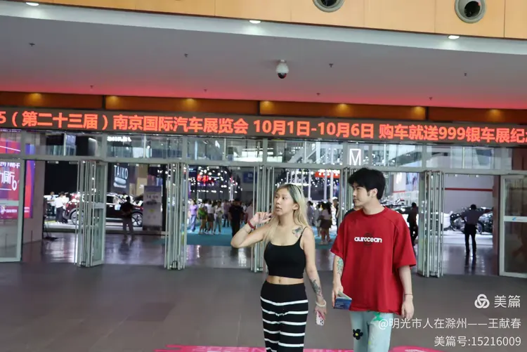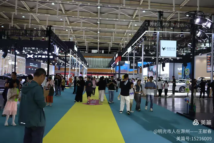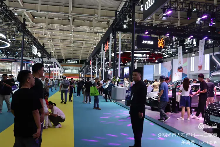 电子屏滚动着展期信息,人流有序进出,展厅里隐约可见车辆轮廓和灯光装饰。我随着队伍缓缓前行,耳边是交谈声、导览提示音,还有孩子兴奋的惊呼。热闹却不杂乱,像一首节奏分明的城市交响曲,每一个音符都落在期待的节拍上。