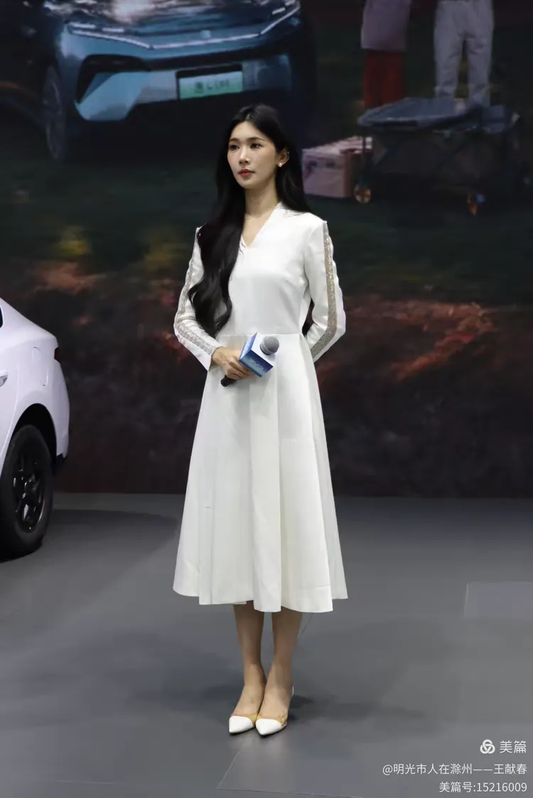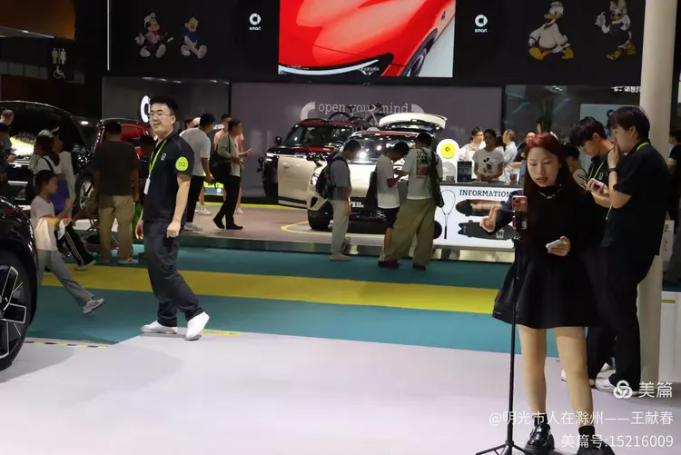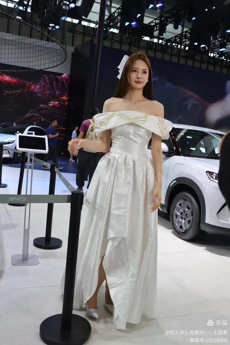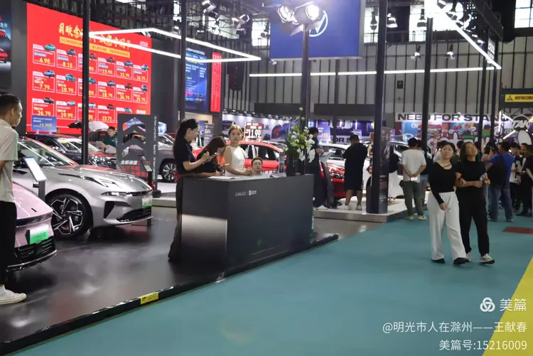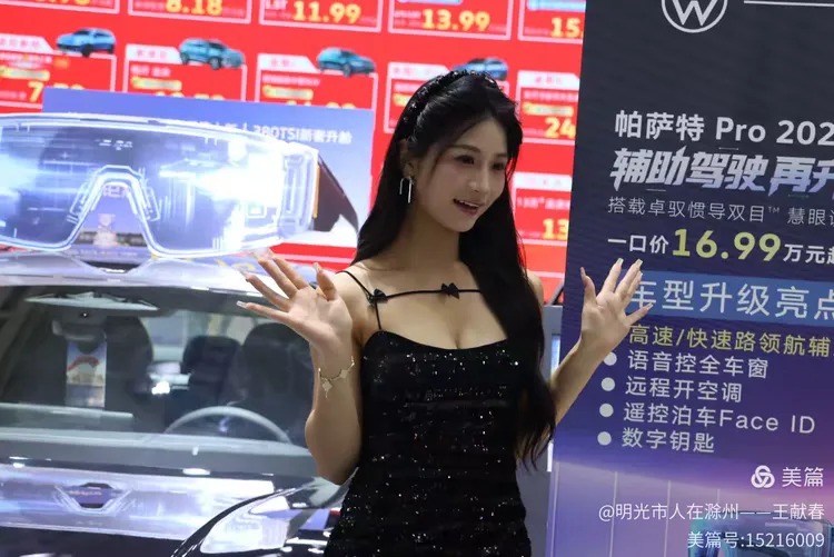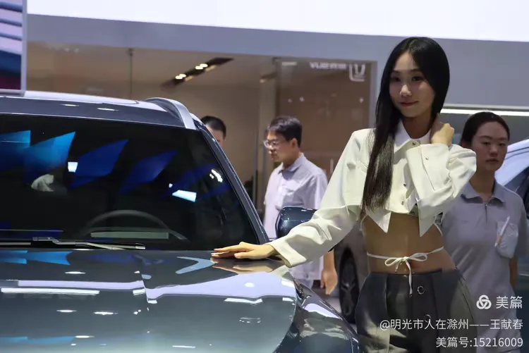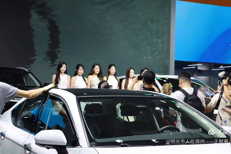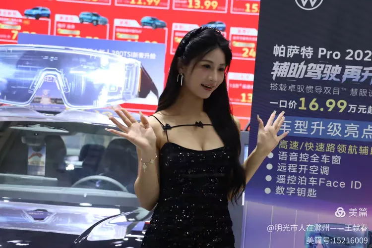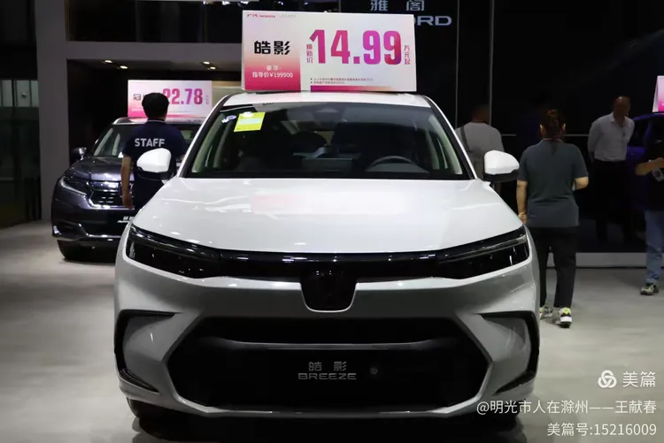 一辆白色皓影停在展台中央,车顶写着“14.99”,像是在轻声诉说自己的价值。几位观众在旁讨论价格与配置,语气认真。我看着那数字,忽然觉得,车不仅是出行工具,更是一份生活预算里的郑重选择。