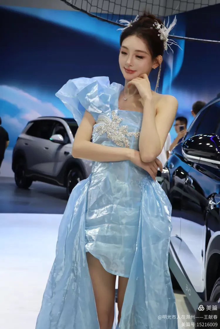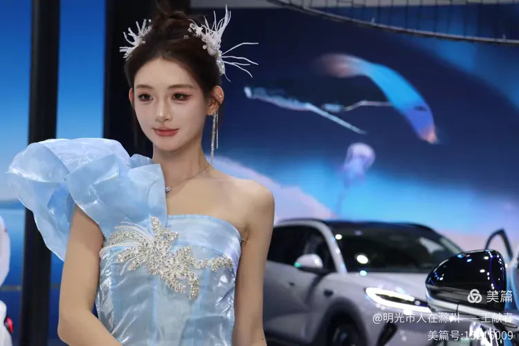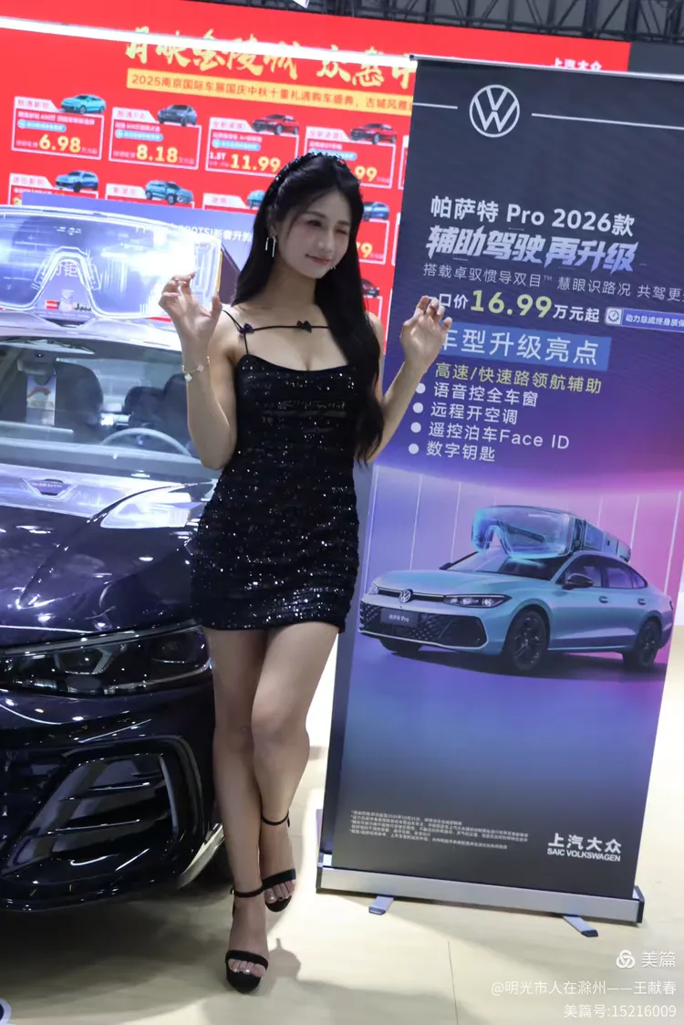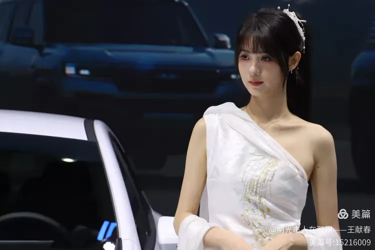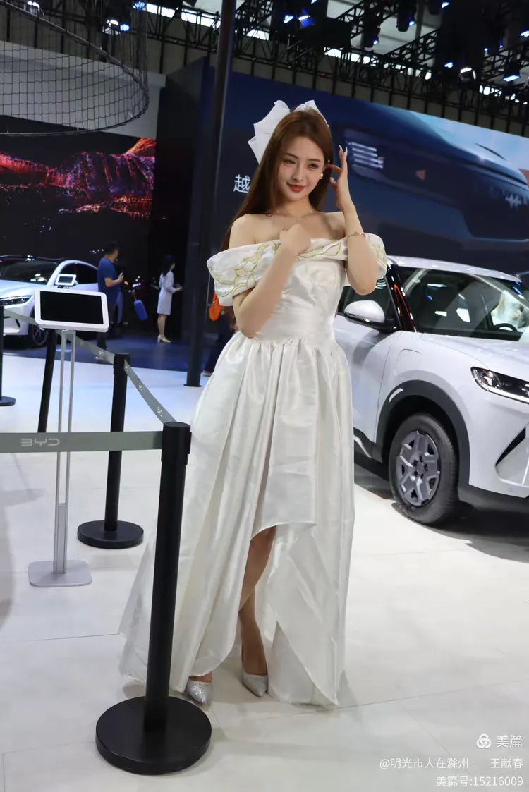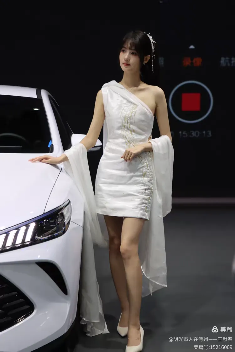 一辆白色皓影停在展台中央,车顶写着“14.99”,像是在轻声诉说自己的价值。几位观众在旁讨论价格与配置,语气认真。我看着那数字,忽然觉得,车不仅是出行工具,更是一份生活预算里的郑重选择。