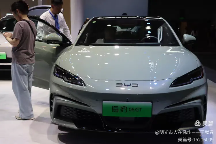 比亚迪的展台前,一辆浅绿色的“海豹06GT”停得端正,车头“BYD”字样格外醒目。一位参观者正低头看手机,似乎在查参数,同伴则轻轻抚摸车身。我站了一会儿,听他们讨论续航和智能系统,忽然意识到,这些曾经陌生的词汇,如今已悄然融入日常。