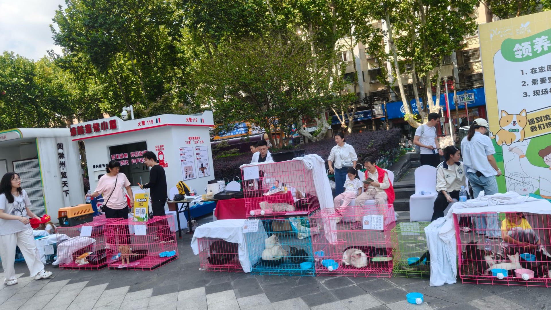 苏宁门口好多小猫咪小狗免费领养啊,虽然都是流浪小动物,但是真的很可爱,还有爱心义诊,真是好有爱,喜欢小动物的爱心人士都快来把它们带回家!