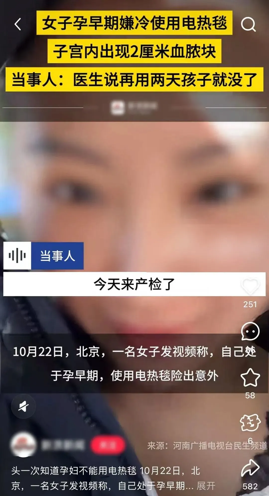 最近有个视频引起了许多女性的关注:视频里一名女子称,自己处于孕早期,使用电热毯后腹痛,被诊断出子宫内出现 2cm 血脓块,接诊医生警告:再多用两天电热毯,孩子可能就保不住了。这令很多准妈妈担心,“孕妇是不是不能用电热毯、热水袋”。