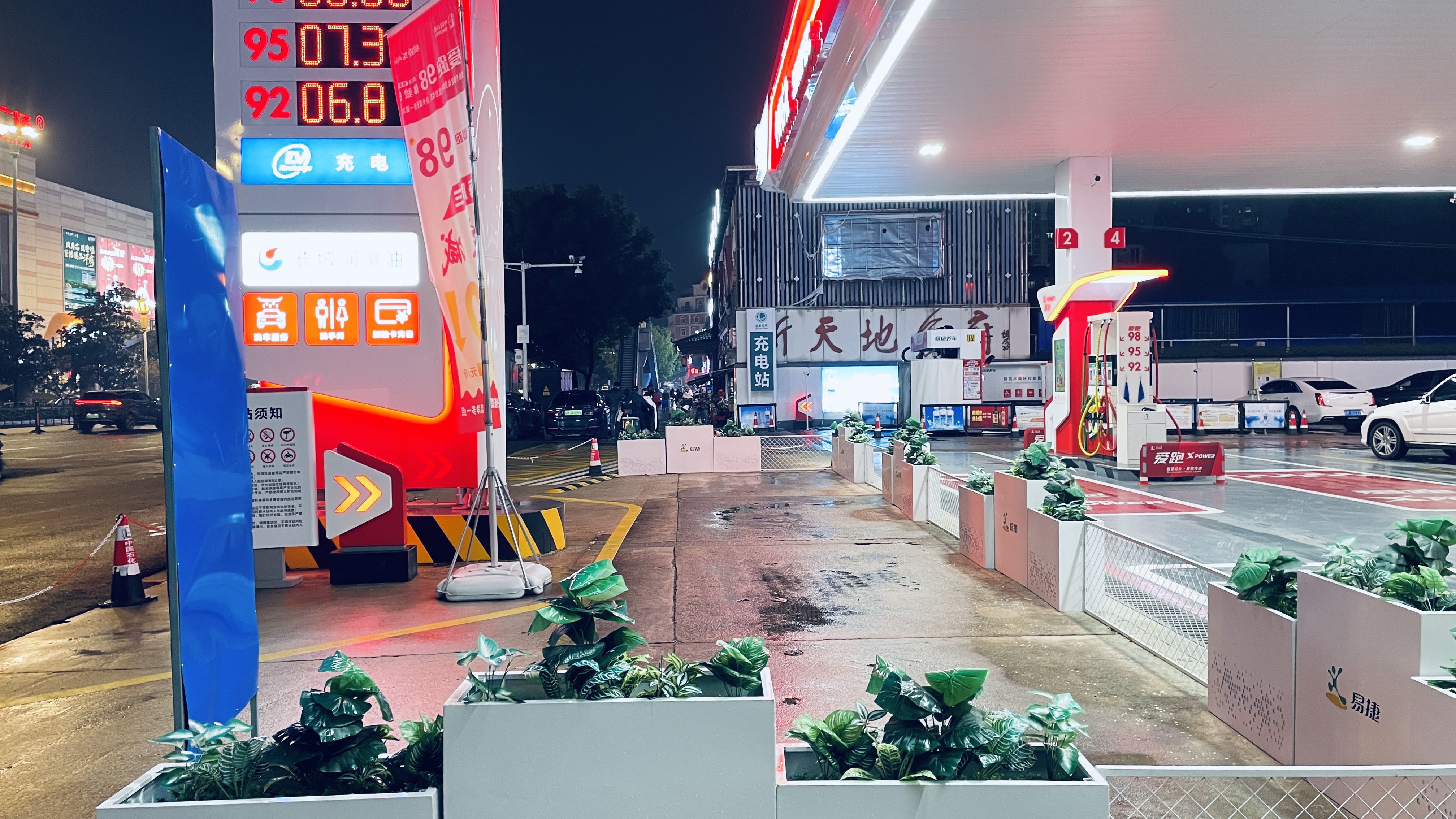 万达对面加油站占用市民正常出行的人行道!还用围栏围起来!给市民出行带来不便并影响人身安全!