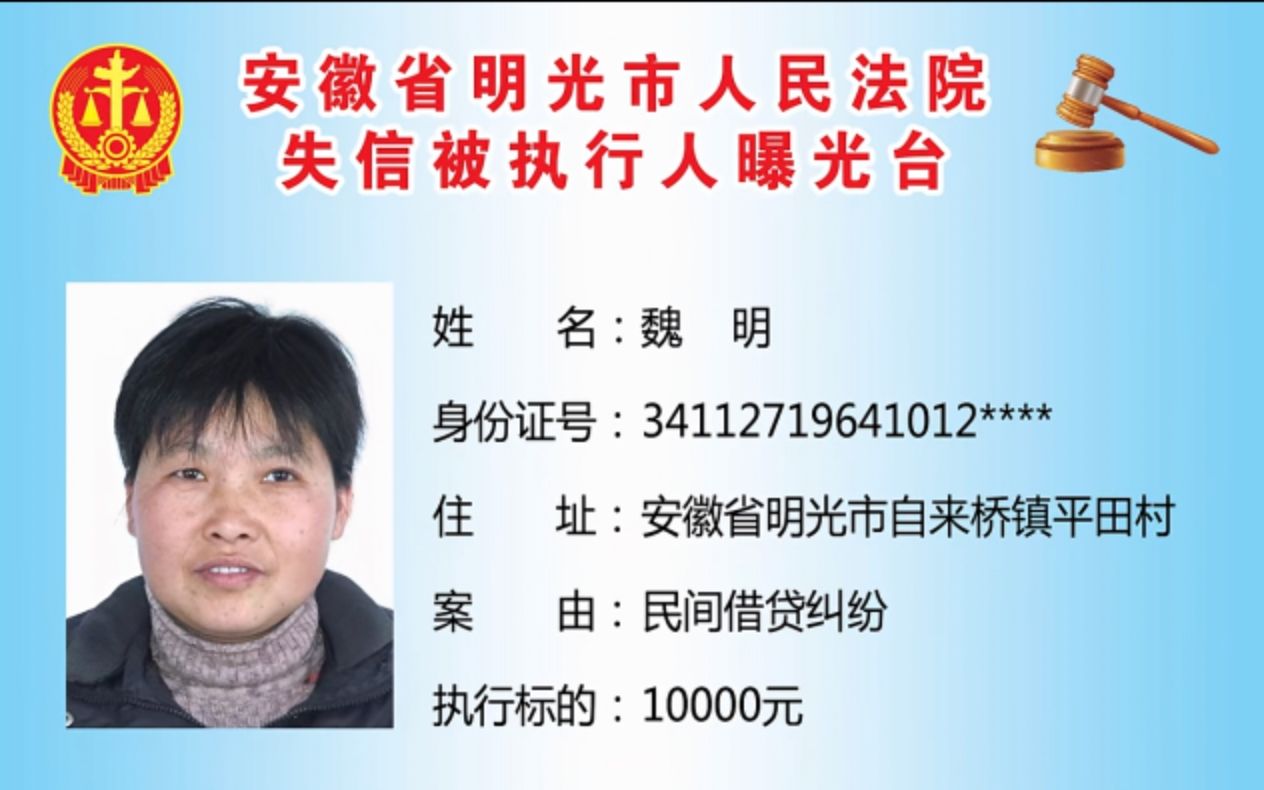 失信被执行人曝光台,滁州明光6人被曝光,快看看有你认识的吗?