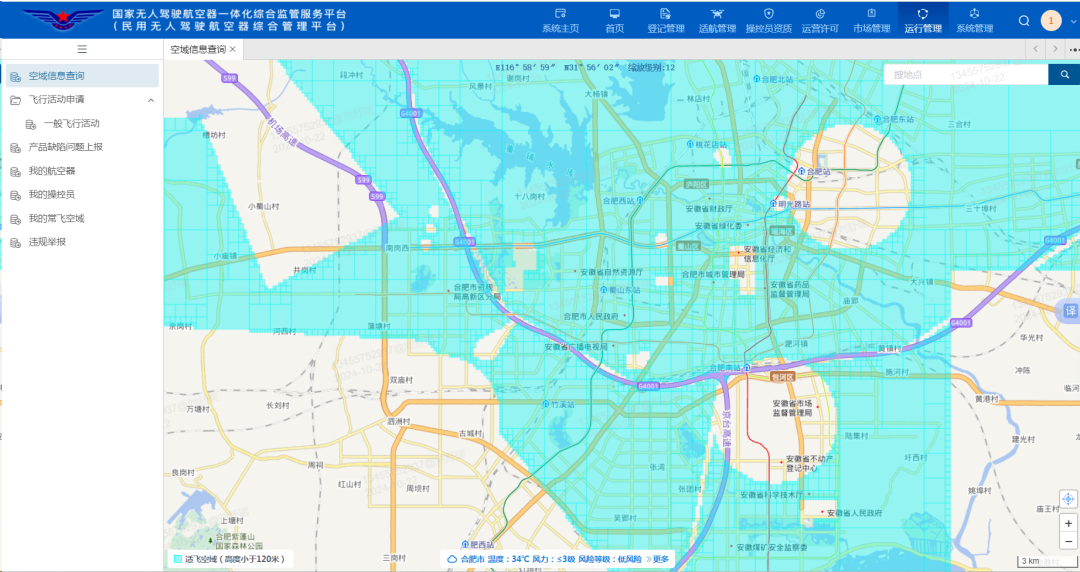 (二)管制空域相关问题:根据《无人驾驶航空器飞行管理暂行条例》第十九条要求,管制空域有以下几种:1、机场以及周边一定范围的区域。2、国界线、实际控制线、边境线向我方一侧一定范围的区域。3、军事禁区、军事管理区、监管场所等涉密单位以及周边一定范围的区域。4、重要军工设施保护区域、核设施控制区域、易燃易爆等危险品的生产和仓储区域,以及可燃重要物资的大型仓储区域。5、发电厂、变电站、加油(气)站、供水厂、公共交通枢纽、航电枢纽、重大水利设施、港口、高速公路、铁路电气化线路等公共基础设施以及周边一定范围的区域和饮用水水源保护区。6、射电天文台、卫星测控(导航)站、航空无线电导航台、雷达站等需要电磁环境特殊保护的设施以及周边一定范围的区域。7、重要革命纪念地、重要不可移动文物以及周边一定范围的区域。8、国家空中交通管理领导机构规定的其他区域。9、凤阳县人民政府遇有特殊情况发布的临时管制空域。以上管制空域实际位置,以及如何申请管制空域,均可在国家无人驾驶航空器一体化综合监管服务平台(UOM)上查询及申请,完成实名登记并登录UOM(网址:https://uas.caac.gov.cn)后操作流程如下图所示: